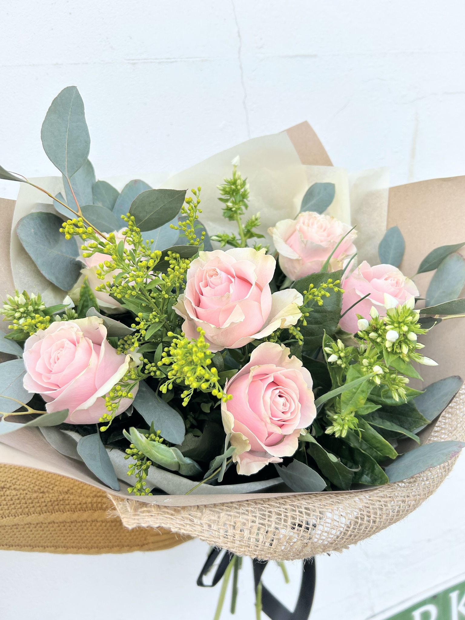 We use the most gorgeous Pink Mondial rose, nestled amongst lush seasonal greenery and delicate filler flowers. A timeless classic for every occasion. This bouquet will come gift wrapped in our luxury, signature eco wrapping.