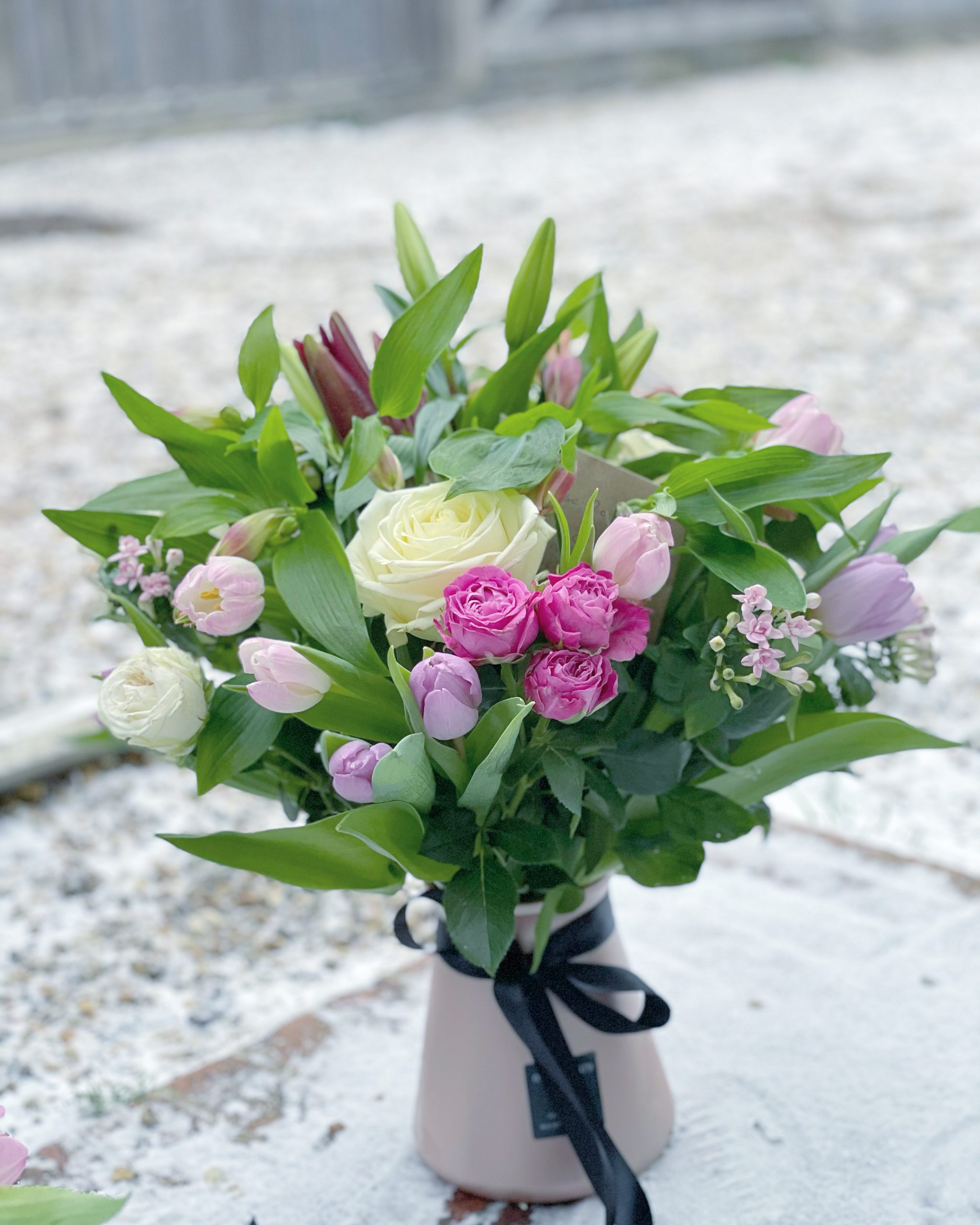 A pretty bouquet to include warm girly pinks, all selected from our fresh daily arrival of stunning cut flowers. Picture for example only.