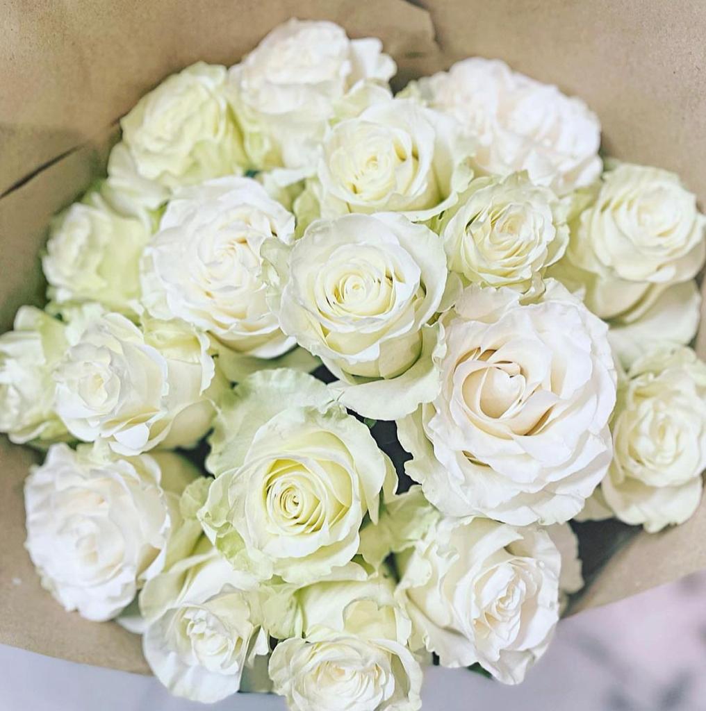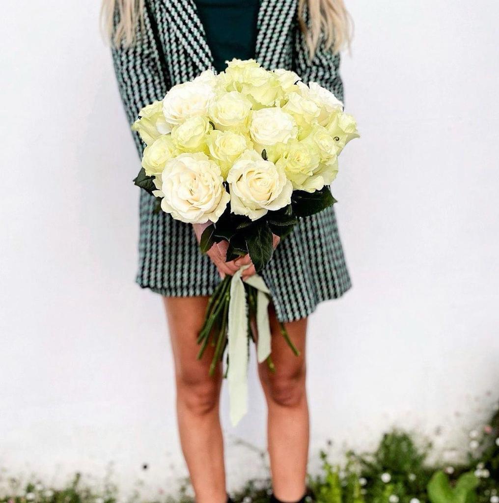 We use the most gorgeous White Mondial rose, nestled amongst lush seasonal greenery and delicate filler flowers. A timeless classic for every occasion. This bouquet will come gift wrapped in our luxury, signature eco wrapping.